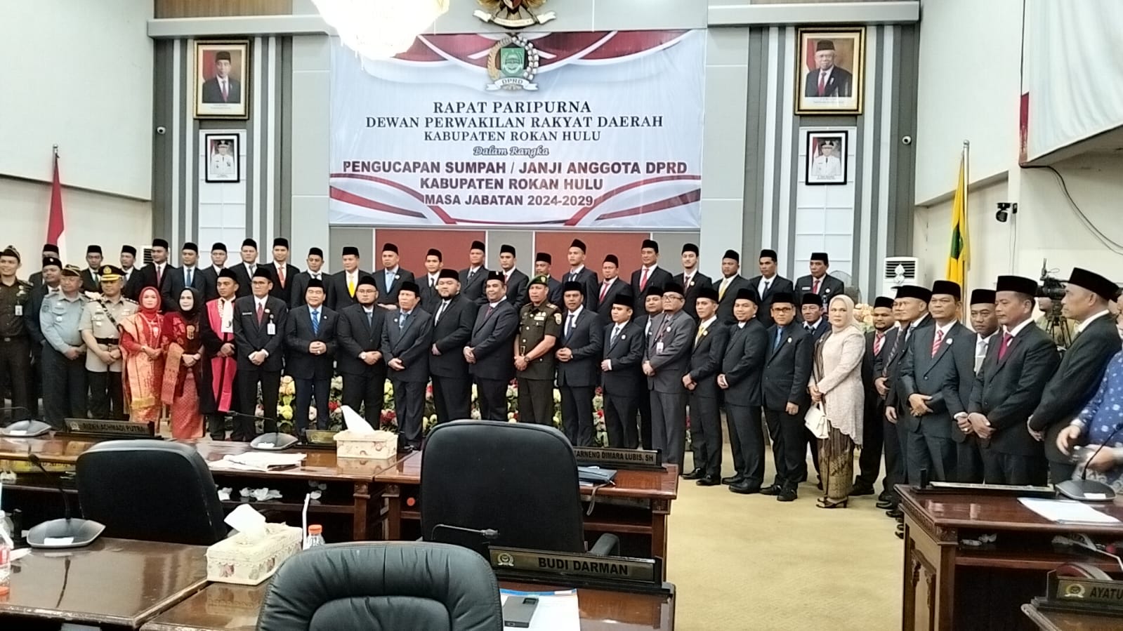 Pengucapan sumpah/janji 45 Anggota DPRD Kabupaten Rohul Masa Jabatan 2024-2029 tersebut akan dipandu Ketua Pengadilan Negeri Pasirpengaraian Rony Suata SH MH. Rapat paripurna akan dipimpin langsung oleh Ketua DPRD Rohul Novli Wanda Ade Putra ST MSi. Senin tanggal 02/09/2024.