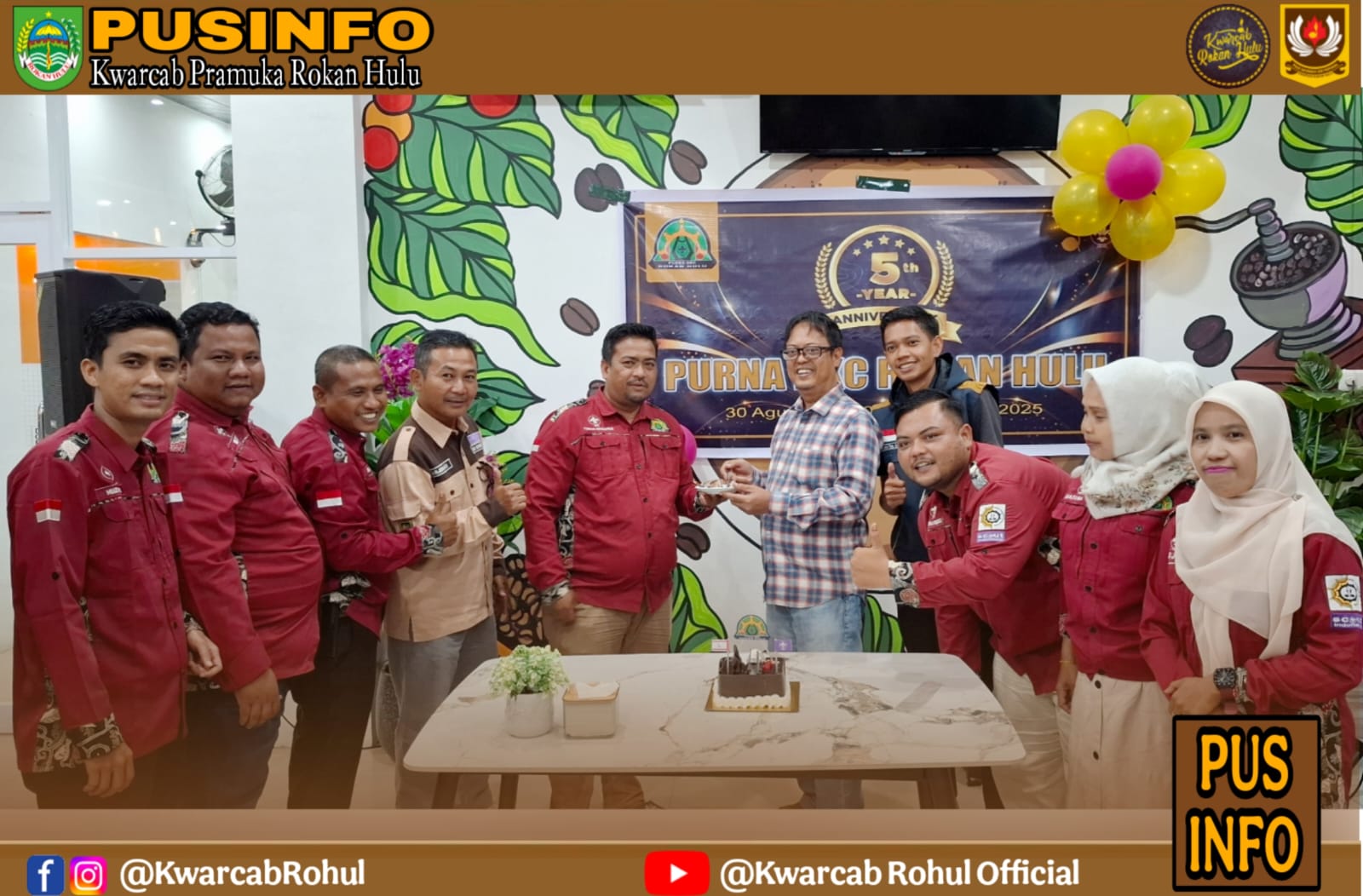 Purna Dewan Kerja Cabang (DKC) Rokan Hulu menggelar Anniversary ke-5 di Raz Café Pasir Pengaraian, Sabtu (02/09/2025). Kegiatan ini menjadi ajang silaturahmi sekaligus refleksi perjalanan kiprah purna DKC dalam mendukung gerakan pramuka di Kabupaten Rokan Hulu.