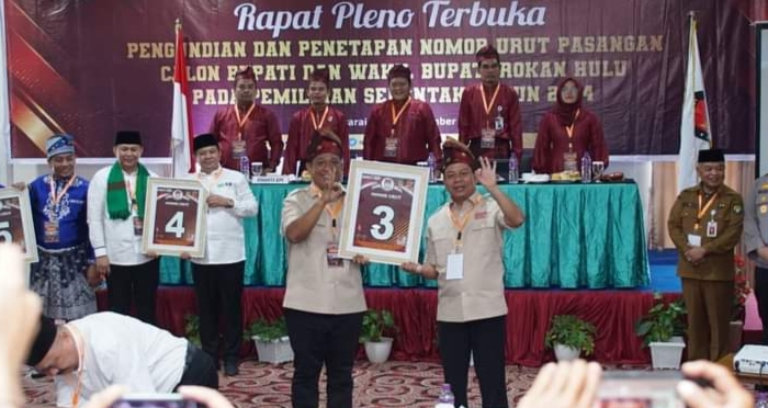 “Kami sudah memutuskan dan menetapkan nomor urut pasangan calon peserta pemilihan kepala daeah (pilkada),” kata Ketua KPU Kabupaten Rokan hulu ujat Ketua KPU Rohul Cepi Abdul Husein, usai rapat pleno terbuka.