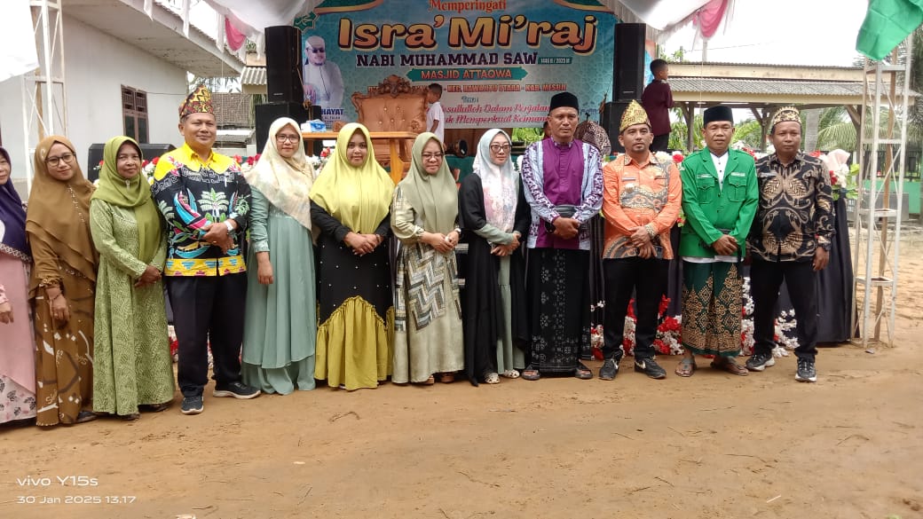 Ketua Muslimat sekaligus Bupati Mesuji terpilih, Hj. Elfianah Khamami, menghadiri acara pengajian peringatan Isra Mi’raj di Masjid At-Taqwa, Desa Sidang Way Puji, Kecamatan Rawa Jitu Utara, Kabupaten Mesuji, pada Kamis (30/01/2025).