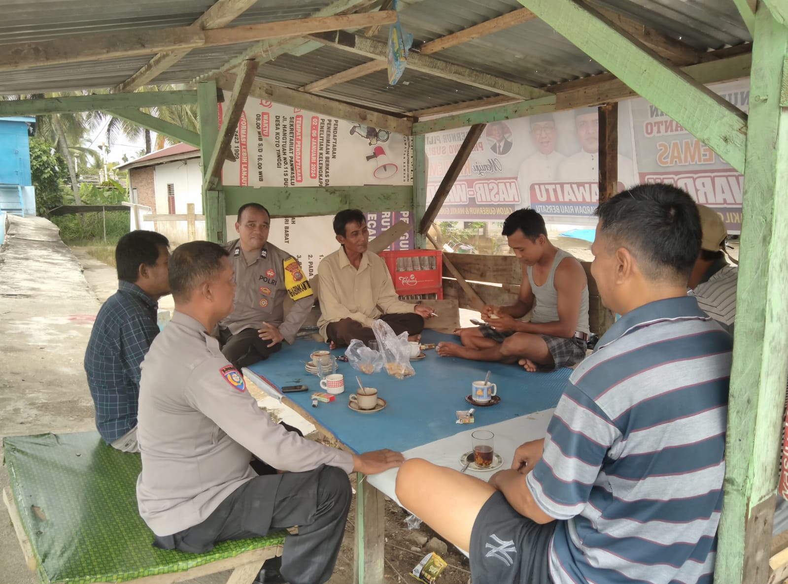 Dalam Operasi Mantap Praja Lancang Kuning Tahun 2024 (OMP-LK24), Kanit Binmas dan Bhabinkamtibmas Polsek Rambah Polres Rokan Hulu (Rohul) giat Preemtif dan Cooling System di Warung Kopi Sapri Desa Babussalam, Sabtu (28/9/2024) sekitar pukul 09.30 Wib.