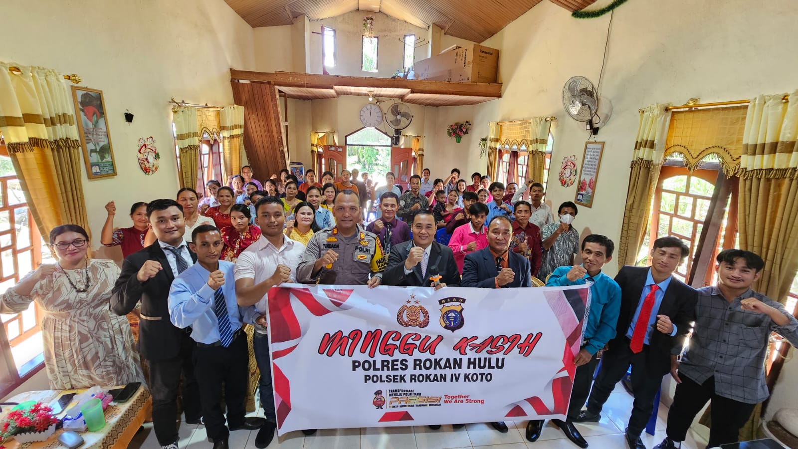 Kegiatan Minggu Kasih, melibatkan 60 Jema’at Gereja Pentakosta langsung dipimpin Kapolsek Rokan IV Koto AKP Yohanes Tindaon SH, kemudian diikuti Personil Polsek Rokan IV Koto