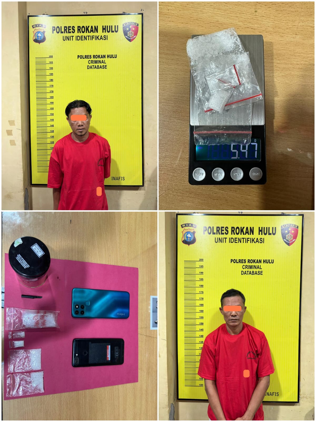 Diinfokan sering melakukan transaksi Narkotika jenis Sabu, Dua Pria ini ditangkap Personil Sat Resnarkoba Polres Rokan Hulu (Rohul) dalam pengungkapan Tindak Pidana (TP) Narkotika jenis Sabu dengan Berat Kotor 5,47 Gram.