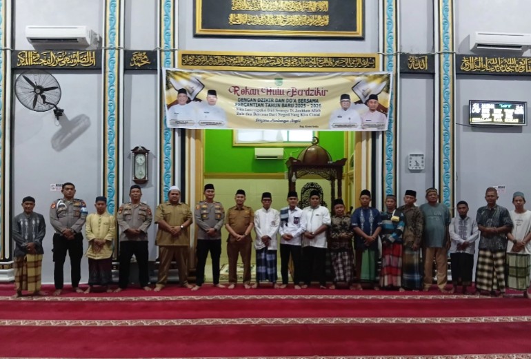 Dalam rangka menyambut pergantian Tahun Baru 2025 menuju 2026, jajaran Polsek Bonai Darussalam bersama unsur pemerintahan kecamatan dan masyarakat melaksanakan kegiatan dzikir dan doa bersama di Masjid Al-Jamik, Desa Rawa, Kecamatan Bonai Darussalam, Kabupaten Rokan Hulu, Selasa (30/12/2025) sore.