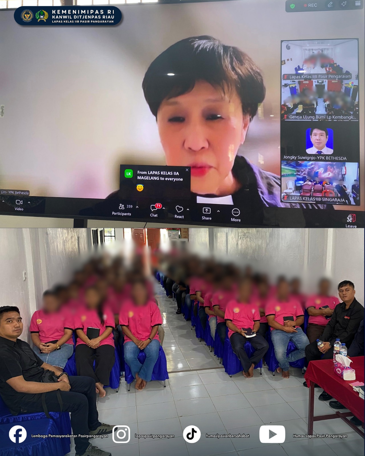 Lembaga Pemasyarakatan (Lapas) Kelas IIB Pasir Pangarayan mengikuti kegiatan Ibadah Online Jumat Agung Tahun 2026 yang diselenggarakan secara nasional melalui aplikasi Zoom, Jumat (3/4/2026).