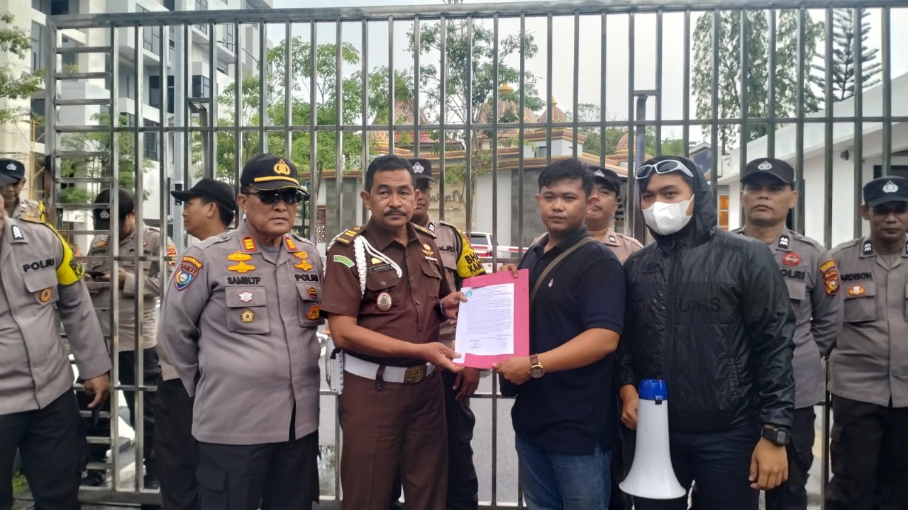 Sejumlah massa yang tergabung dalam Forum Komunikasi Pemuda Mahasiswa Pekanbaru Riau (FKPMPR) gelar aksi terkait adanya kejanggalan dalam pembangunan Jembatan Sungai Pakning-Bengkalis yang digelar di depan Kejati Riau, Senin (23/09/2024).