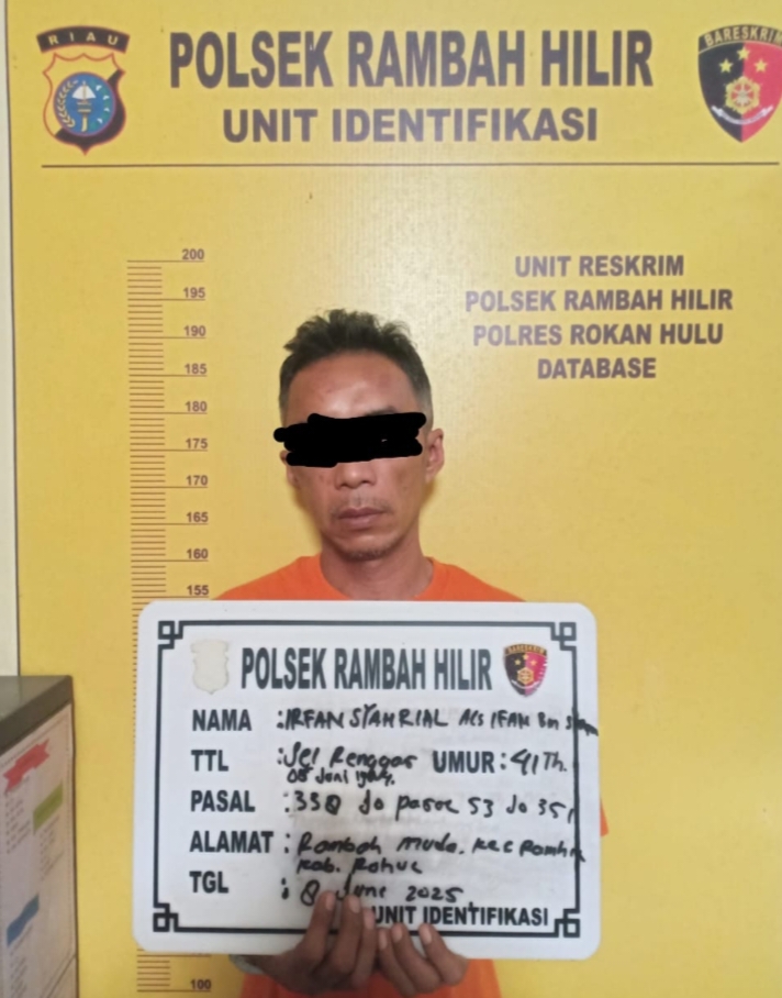 Kapolres Rokan Hulu AKBP Emil Eka Putra, S.I.K, M.S.I melalui Kapolsek Rambah Hilir Ipda Jonnes,. S.H didampingi Paur Humas Polres Rohul IPDA Sarlin Sihotang, S.H membenarkan adanya penangkapan terhadap pelaku inisial SI (41 Tahun).