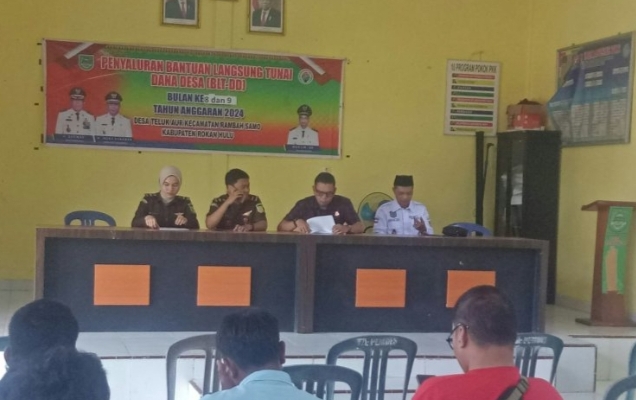 Kejaksaan Rohul mendengarkan keterangan Saksi dalam perkara Dugaan Penyimpanan penyaluran pupuk bersubsidi tahun 2019 sampai 2022, Yang dilaksanakan di Aula kantor desa Teluk Aur, kecamatan Rambah Samo, kabupaten Rokan Hulu, pada hari Rabu tanggal 18/ 09/2024.