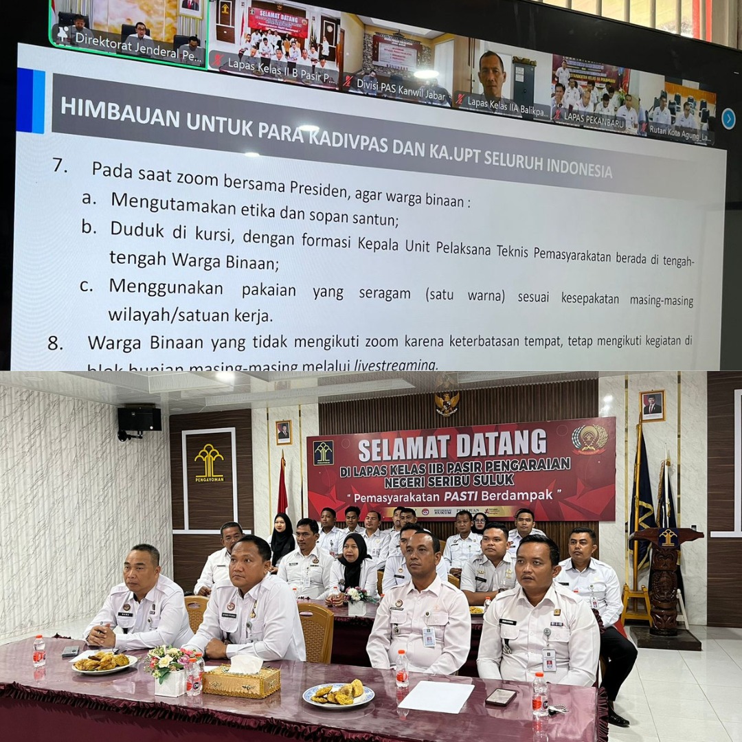 Lembaga Pemasyarakatan (Lapas) Kelas II B Pasir Pangarayan, ikuti rapat persiapan kegiatan Presiden menyapa Warga Binaan Pemasyarakatan Rabu (4/12/2024).