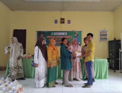 Kepala desa teluk Aur Muslim SH, Bersama ketua TP, PKK Ny, Hernita. Gelar kegiatan pemberian makanan tambahan (PMT) Bu Hamil dan Balita Se-desa teluk Aur, pada hari Jumat tanggal 08/08/2025.