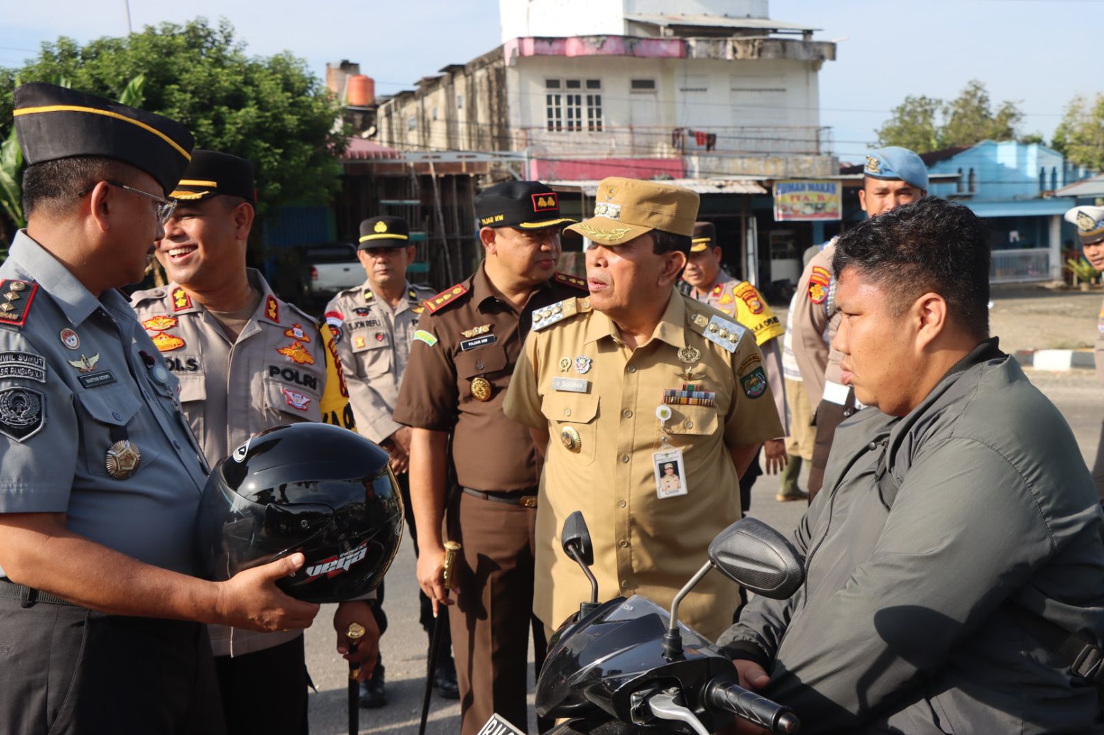 Setelah pelaksanaan Gelar Pasukan dilanjutkan pembagian Helm Gratis oleh Bupati, Kapolres Rokan Hulu, dan Forkopimda Kab. Rokan Hulu