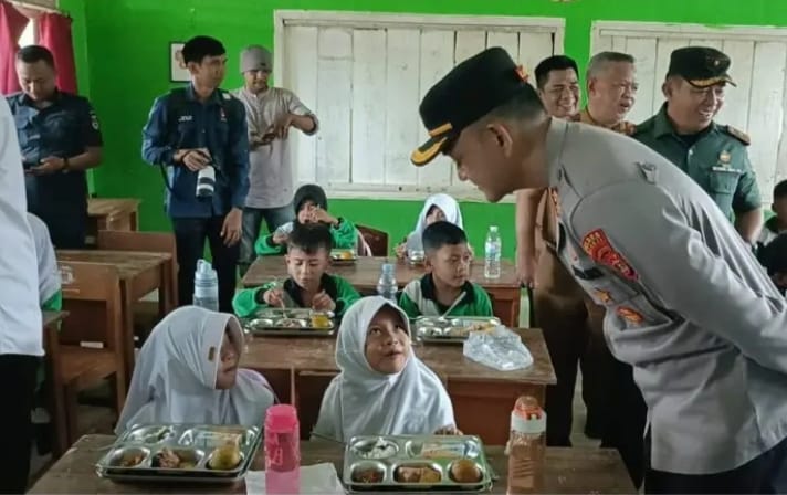 Kapolres bersama Forkopimda Kabupaten Mesuji menghadiri launching makanan bergizi yang cdi bagikan kepada anak sekolah dari tingkat Paud, TK, SD, SMP dan SMA di 19 titik yang ada di Kecamatan Tanjung Raya. Rabu 26/02/2025