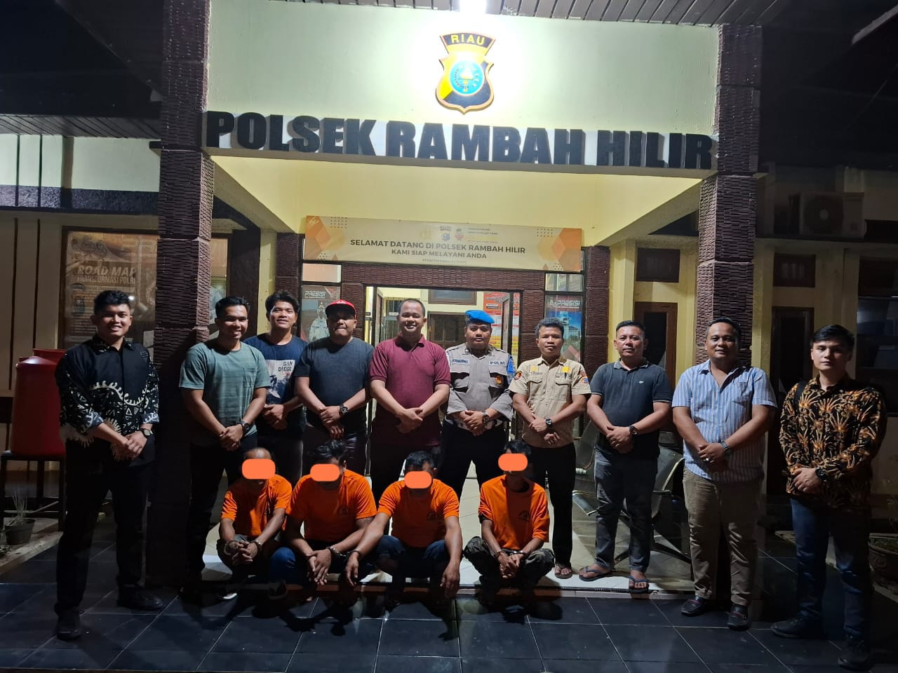 “Polsek Rambah Hilir berhasil mengamankan empat orang diduga pelaku pencurian hewan ternak sapi di antaranya yaitu, NH alias KCL dan SY alias FJ RAS dan JL di Desa Rambah Muda Kec. Rambah Hilir Kab. Rokan Hulu, sedangkan untuk JL diamankan di Mapolsek Bonai Darussalam setelah dihubungi oleh Kapolsek Rambah Hilir, mengingat TKP perkara di wilkum Polsek Bonai Darussalam,”