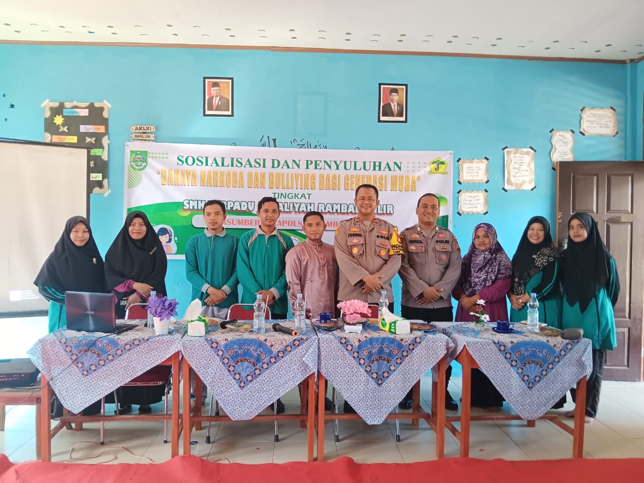 Untuk mencegah terjadinya penyalahgunaan Narkoba sejak usia dini serta perilaku Bullying antar siswa, Kapolsek Rambah Hilir IPDA Jonnes laksanakan giat Sosialisasi Bahaya Penyalah gunaan Narkoba dan Bullying di SMK Terpadu Ismailiyah Kec. Rambah Hilir Kab Rohul, (13/12/2024)