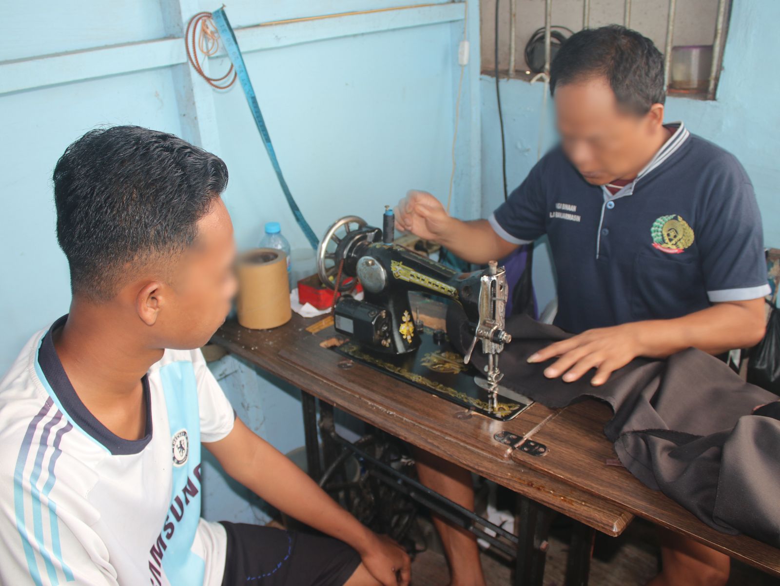 Setiap hari, Andi duduk dengan fokus di ruang kerja, memegang gunting dan jarum jahit, memperbaiki pakaian warga binaan maupun petugas yang rusak atau robek. Dengan penuh ketekunan, ia merapikan pakaian yang robek atau aus hingga kembali nyaman dipakai. Ketelitian dan tanggung jawab yang ia tunjukkan menjadikan setiap jahitannya rapi dan fungsional, mencerminkan proses belajar yang dijalaninya dengan sungguh-sungguh.