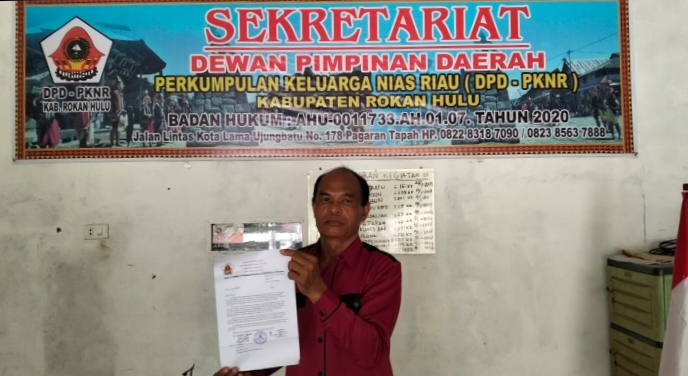 Ketua Dewan Pimpinan Daerah Perkumpulan Keluarga Nias Riau (DPD PKNR) Kabupaten Riau Rokan Hulu surati Oknum ibu rumah tangga yang di duga tebar kebencian atas suku Nias.