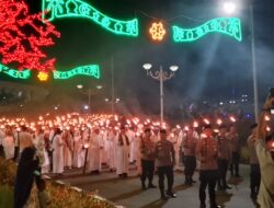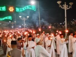 Ribuan peserta tampak antusias membawa obor yang menyala, menciptakan panorama cahaya yang indah di sepanjang rute pawai. Lantunan takbir, tahmid, dan tahlil menggema, menambah suasana religius dan penuh suka cita di tengah masyarakat.