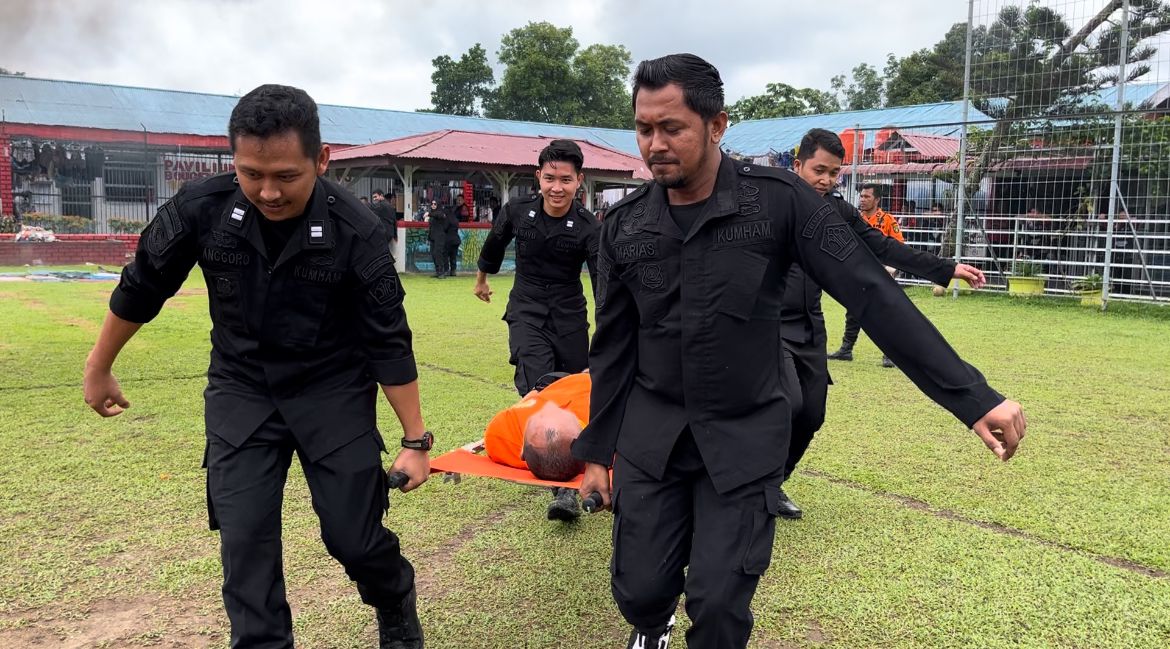 Lembaga Pemasyarakatan (Lapas) Kelas II B Pasir Pengaraian Kanwil Kemenkumham Riau bekerja sama dengan Badan Penanggulangan Bencana Daerah (BPBD) Rokan Hulu dan Satpol PP dan Damkar Rokan Hulu mengadakan pelatihan penanggulangan bencana alam dan kebakaran, Kamis (26/09/2024).