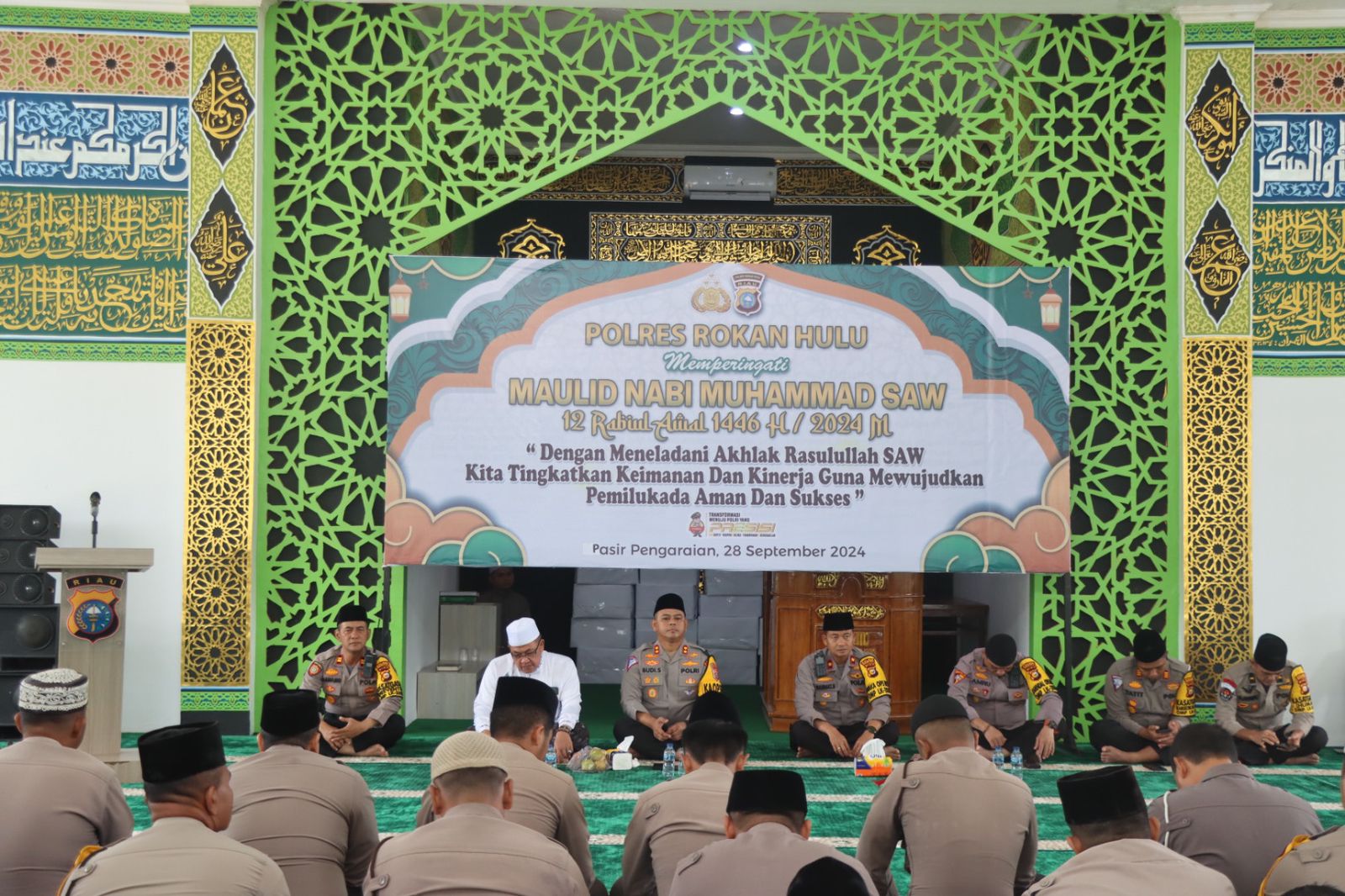 Lanjutnya, memperingati Maulid Nabi Muhammad SAW 1446 H, ditaja dengan maksud dan tujuan meningkatkan keimanan dan ketaqwaan Personil Polres Rohul.