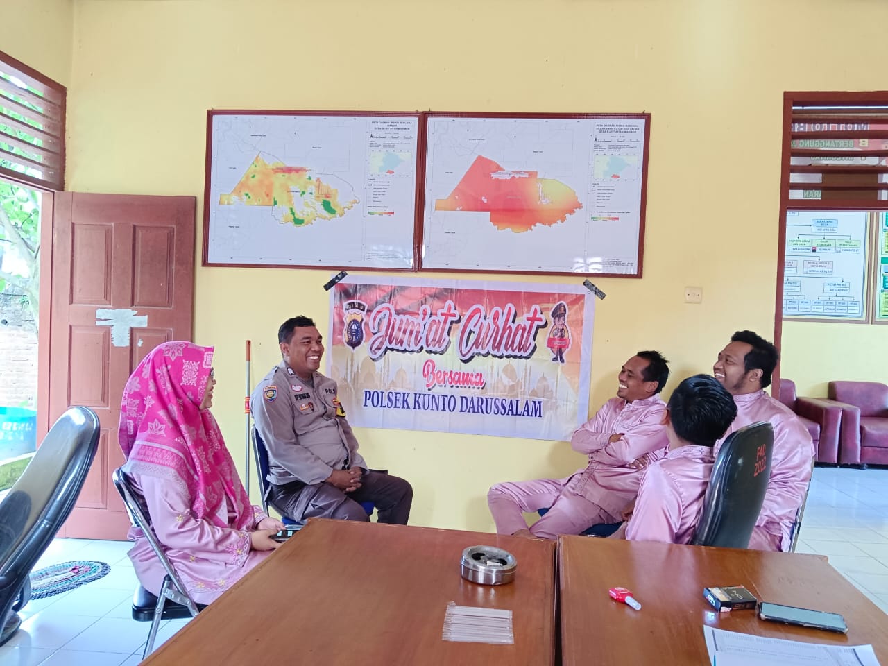 Dalam Ops Mantap Praja Lancang Kuning Tahun 2024 (OMP-LK 24) Personil Polsek Kunto Darussalam Polres Rokan Hulu (Rohul) giat Jum’at Curhat dan Coolling System bersama Masyarakat Desa Bukit Intan Makmur Jum’at (20/9/2024).