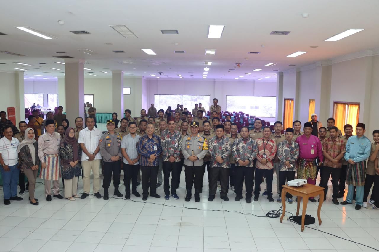 Dalam Ops Mantap Praja Lancang Kuning Tahun 2024 (OMP-LK24), Kapolres Rokan Hulu (Rohul) mengikuti rapat Kordinasi dan Sinkronisasi (Rakornis) pleno terbuka rekapitulasi dan penetapan Daftar Pemilih Tetap (DPT) pemilihan Gubernur dan Wakil Gubernur, pemilihan Bupati- Wakil Bupati Rohul Tahun 2024, di Hotel Sapadia Pasir Pangaraian, Jumat (20/9/2024) sekitar pukul 09.30 Wib.