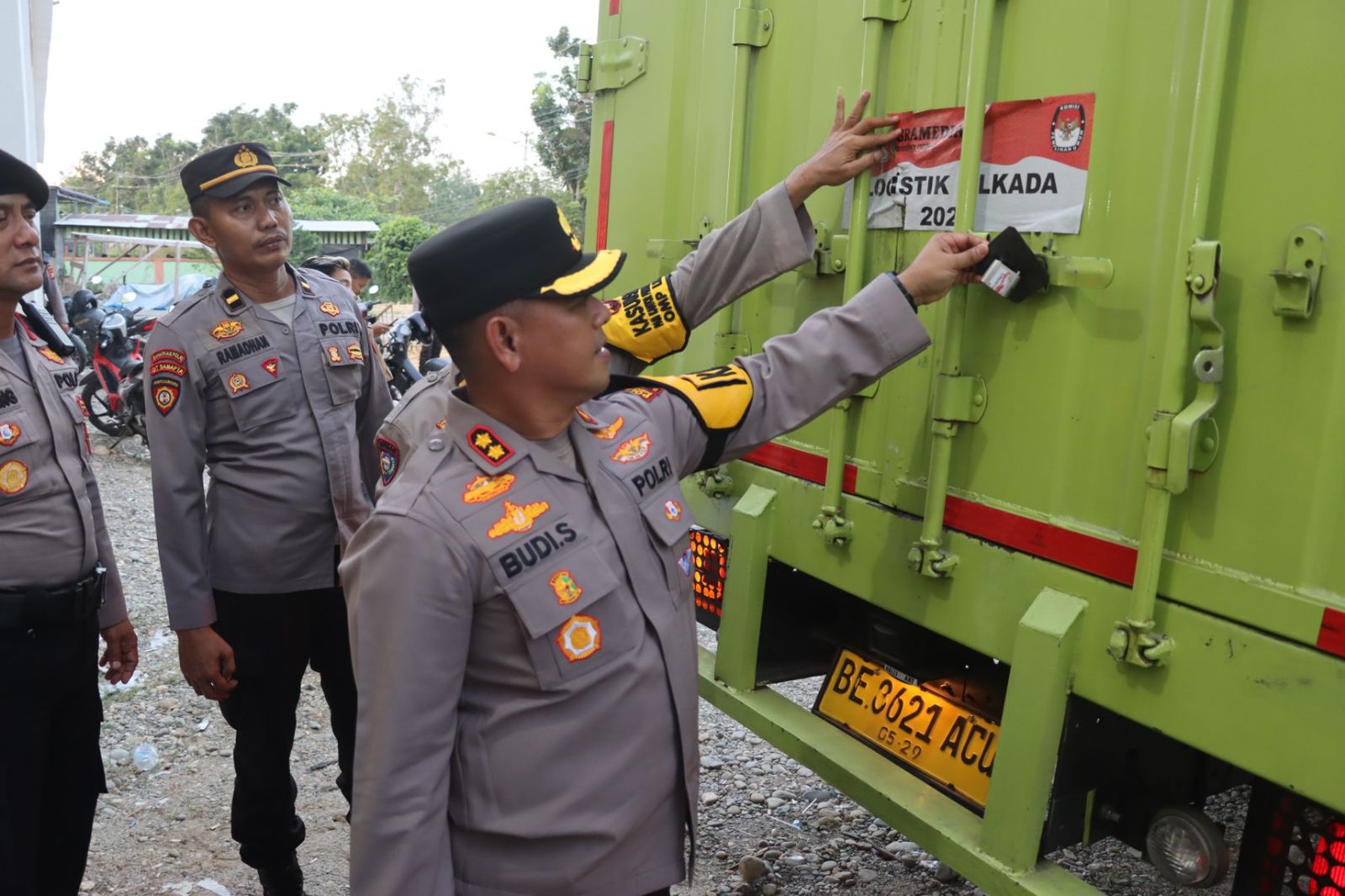 Dalam Operasi Mantap Praja Lancang Kuning Tahun 2024 (OMP-LK24), Kapolres Rokan Hulu (Rohul) AKBP Budi Setiyono SIK MH monitoring terkait dengn kedatangan Logistik Pilkada Tahun 2024 di Gudang Logistik KPU Rohul, Rabu (23/10/2024) sekitar pukul 18.00 Wib.