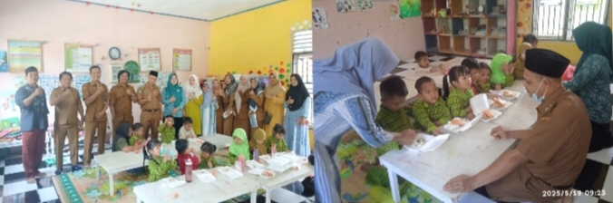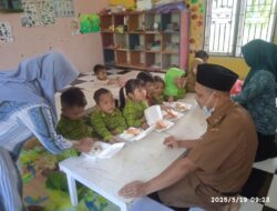Pemdes teluk aur, kecamatan rambah samo,kabupaten rokan hulu , gelar kegiatan pemberian makanan bergizi gratis kepada anak paud nur falah ,pada hari Senin tanggal 19/05/2025 pagi.