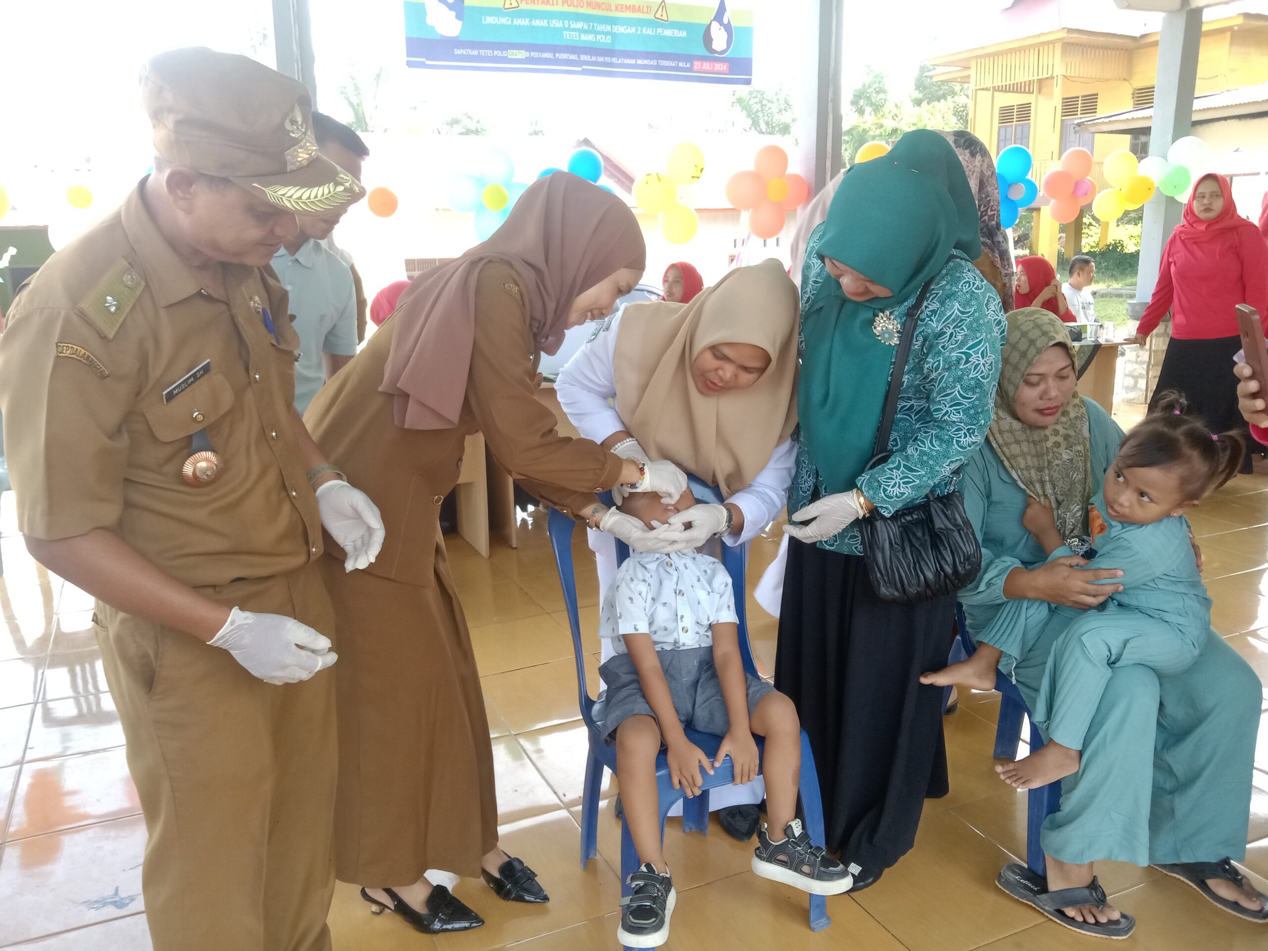 Pemerintah Desa Teluk Aur, Kecamatan Rambah Samo, Kabupaten Rokan Hulu, Provinsi Riau Melaksanakan Pekan Imunisasi Nasional (PIN) Polio dalam rangka penanggulangan Polio, bertempat di Aula Desa dan Halaman Kantor Desa Teluk Aur.pada hari Senin tanggal 29/07/2024.