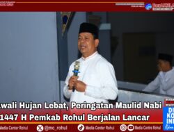 Acara yang rencanaya akan dimulai jam 19.30 WIB bhagda Sholat Isya Berjama’ah itu harus diundur 1 jam dikarenakan hujan deras yang mengguyur wilayah Pasir Pengaraian dan sekitarnya, namun hujan tak menghalangi antusias ratusan jamaah tetap hadir pada peringatan Maulid Nabi Muhammad SAW 1447 Hijriyah