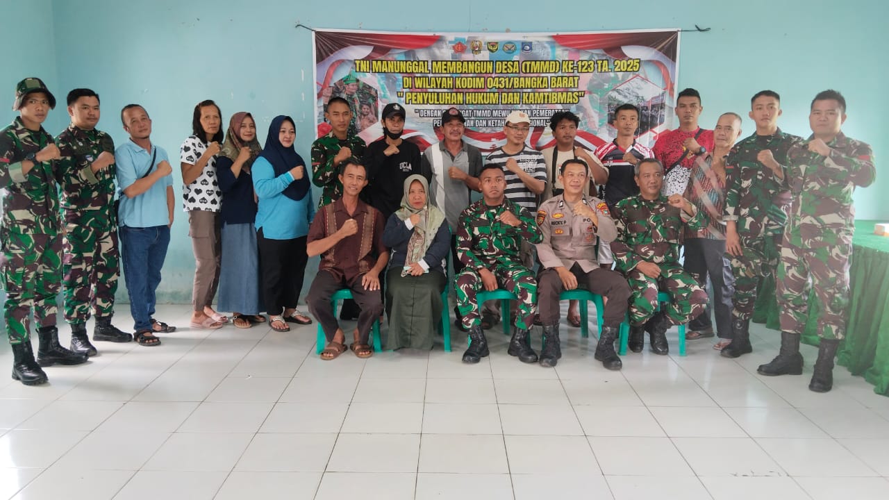 Dalam rangka meningkatkan kesadaran hukum dan ketertiban masyarakat (Kamtibmas), Kodim 0431/Bangka Barat mengadakan penyuluhan hukum dan Kamtibmas di lokasi pelaksanaan TNI Manunggal Membangun Desa (TMMD) ke-123.