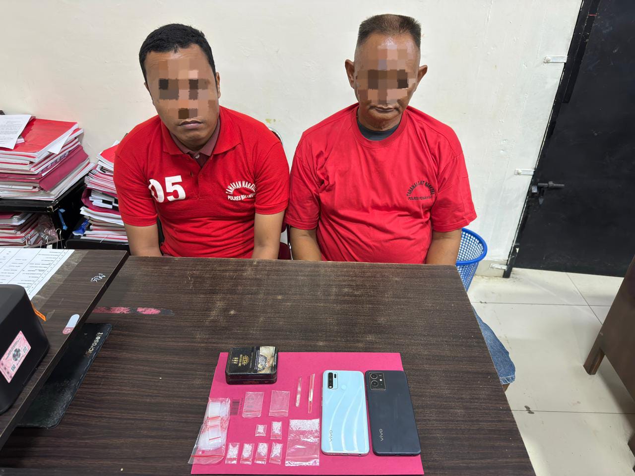 Saat dilakukan penangkapan, petugas menemukan barang bukti berupa 7 paket kecil narkotika jenis sabu yang dibungkus plastik klip bening, 2 lembar plastik klip bening, 1 pack plastik klip bening, 1 buah sendok terbuat dari pipet plastik, 1 buah kaca pirex, 1 kotak rokok merek Dji Sam Soe warna hitam, serta 2 unit handphone merk Vivo warna biru dan hitam yang digunakan dalam aktivitas transaksi narkoba.