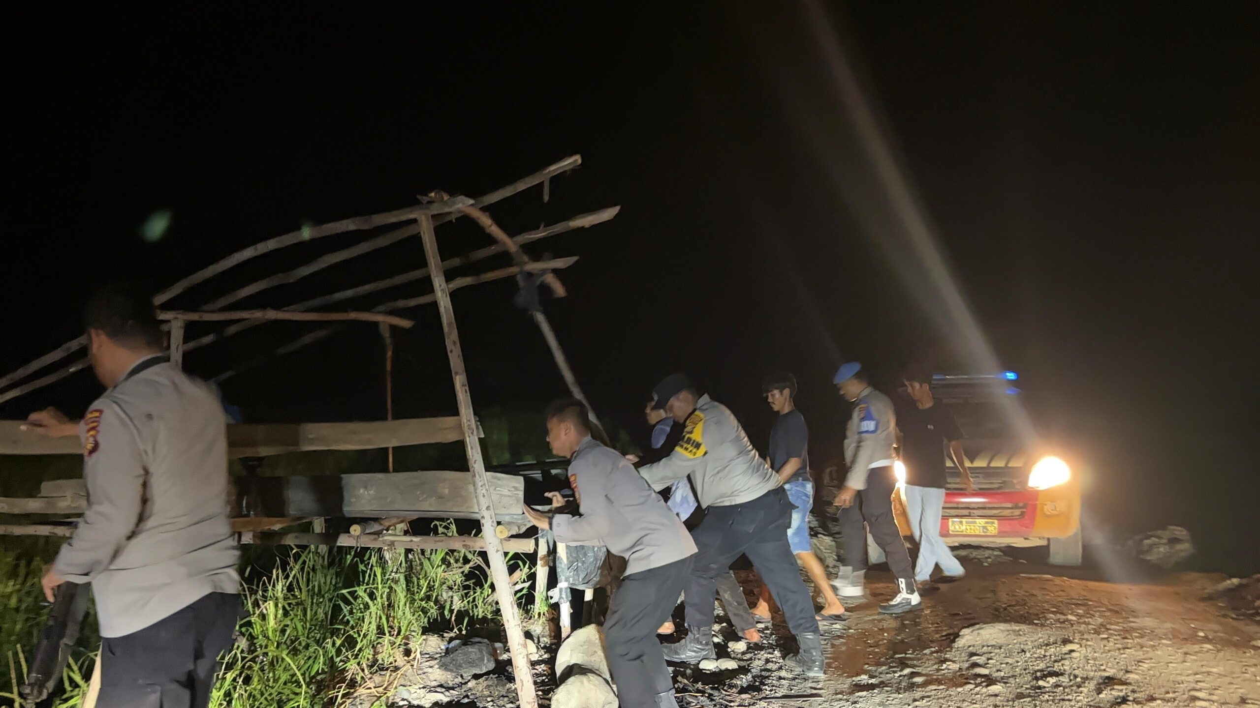 Kapolsek dan tim membongkar 1 (Satu) Buah Portal yang berada di TKP, serta Merubuhkan 2 (Dua) Buah Pondok yang berada di TKP.