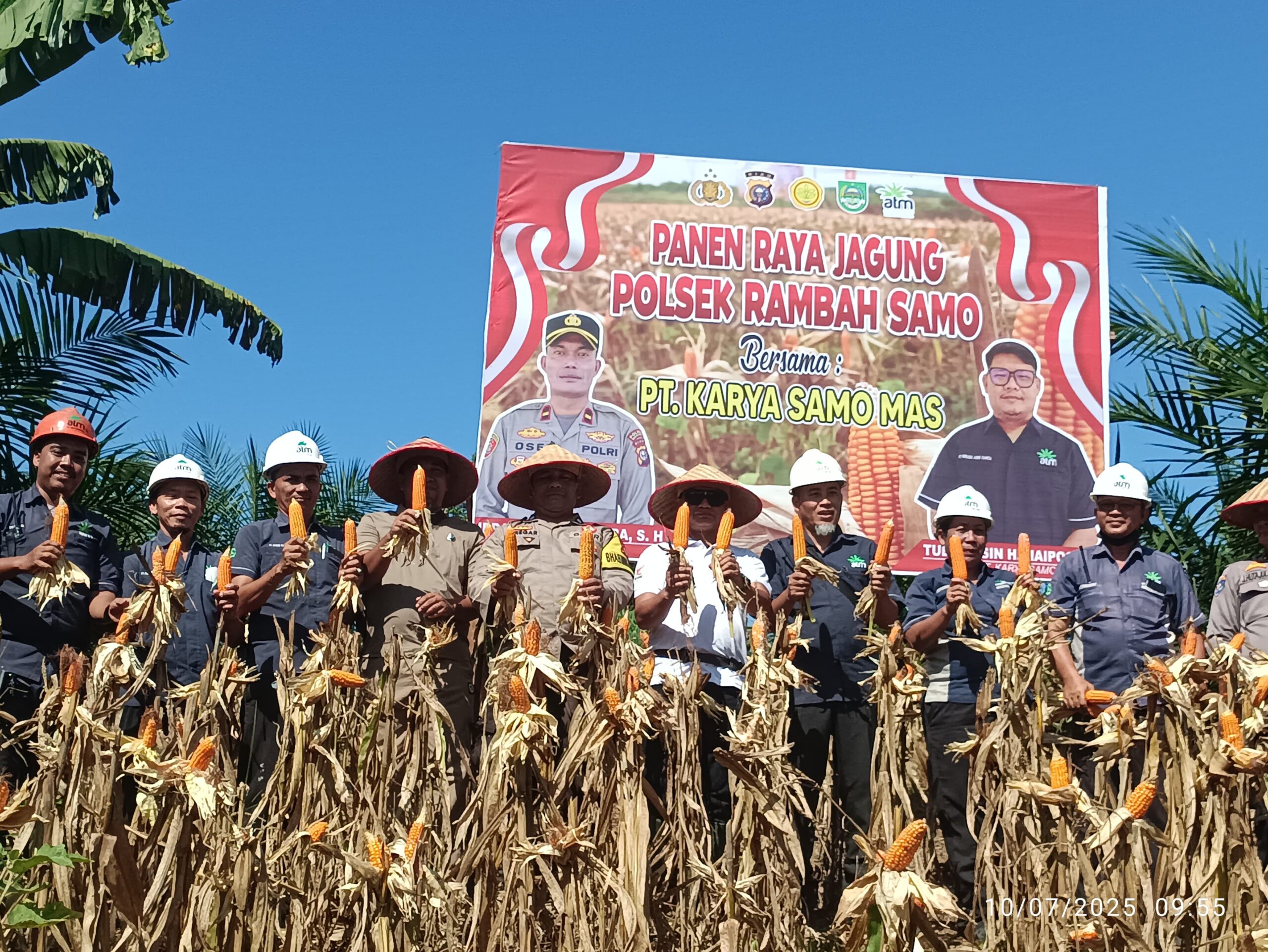 Polsek rambah Samo,bersama PT karya Samo mas gelar panen raya jagung pada hari kamis tanggal 10 Juli 2025.