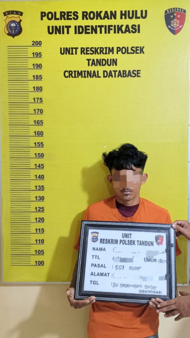 Kepolisian Sektor Tandun, Polres Rokan Hulu, mengamankan seorang pria yang diduga melakukan tindak pidana penganiayaan menggunakan senjata tajam di areal perkebunan PTPN IV Regional III Kebun Sei Tapung, Kecamatan Tandun, Kabupaten Rokan Hulu.