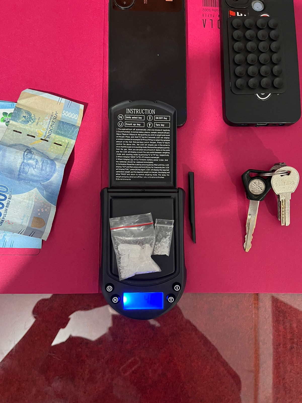 Dari tangan kedua tersangka, polisi mengamankan sejumlah barang bukti, antara lain dua paket sabu dengan total berat kotor 4,60 gram, beberapa unit telepon genggam, alat takar sabu, uang tunai dengan total lebih dari Rp 1,8 juta yang diduga hasil transaksi narkotika, serta satu unit sepeda motor.