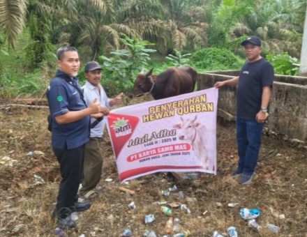 PT Karya Samo Mas (KSM) yang berada di Desa Teluk Aur, Kecamatan Rambah Samo, Kabupaten Rokan Hulu, menyalurkan bantuan 7 ekor sapi kurban kepada masyarakat sekitar dalam rangka memperingati Hari Raya Idul Adha 1446 H.