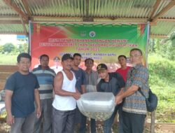 PT, karya Samo mas(KSM) menyerahkan CSR Bantuan Bibit ikan mas dan ikan nila sebanyak 10.000 ekor kepada kelompok tani kolam ikan di embung desa teluk Aur, pada hari Jumat 25/04/2025.