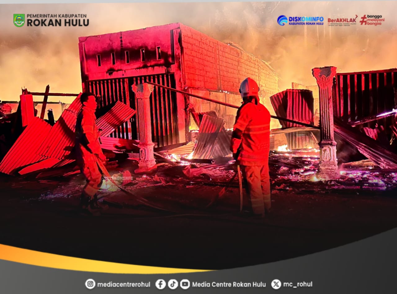 Kebakaran hebat terjadi di Pasar Lama Pekan Tebih, Kecamatan Kepenuhan Hulu, pada Rabu malam (11/02/2026).