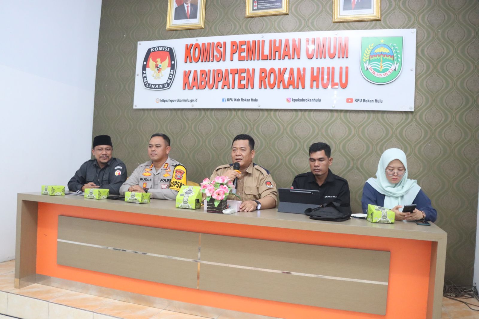 Rapat Koordinasi (Rakor) persiapan Kampanye Rapat Umum Pemilihan Bupati-Wakil Bupati Rokan Hulu (Rohul) Tahun 2024, di Aula Rapat KPU Rohul, Senin (30/9/2024) sekitar pukul 15.30 Wib.