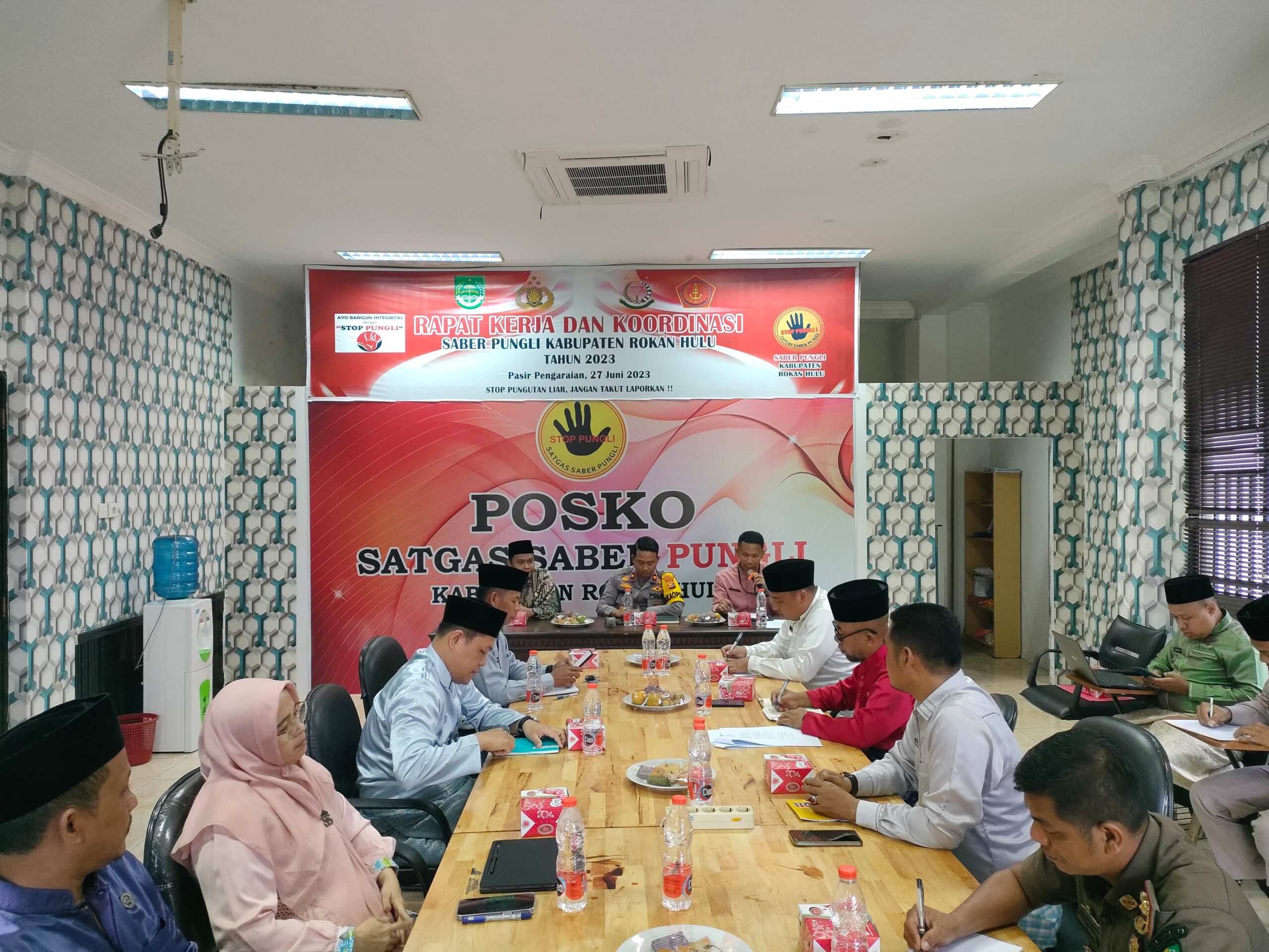 Tim Satuan Tugas Sapu Bersih Pungutan Liar (SABER PUNGLI) Kabupaten Rokan Hulu menggelar rapat kerja tahun 2024 pada Jumat (27/12/2024) di Aula Sekretariat SABER PUNGLI Kabupaten Rokan Hulu. Rapat dimulai pukul 09.30 WIB dan dihadiri oleh berbagai unsur pemerintahan daerah.