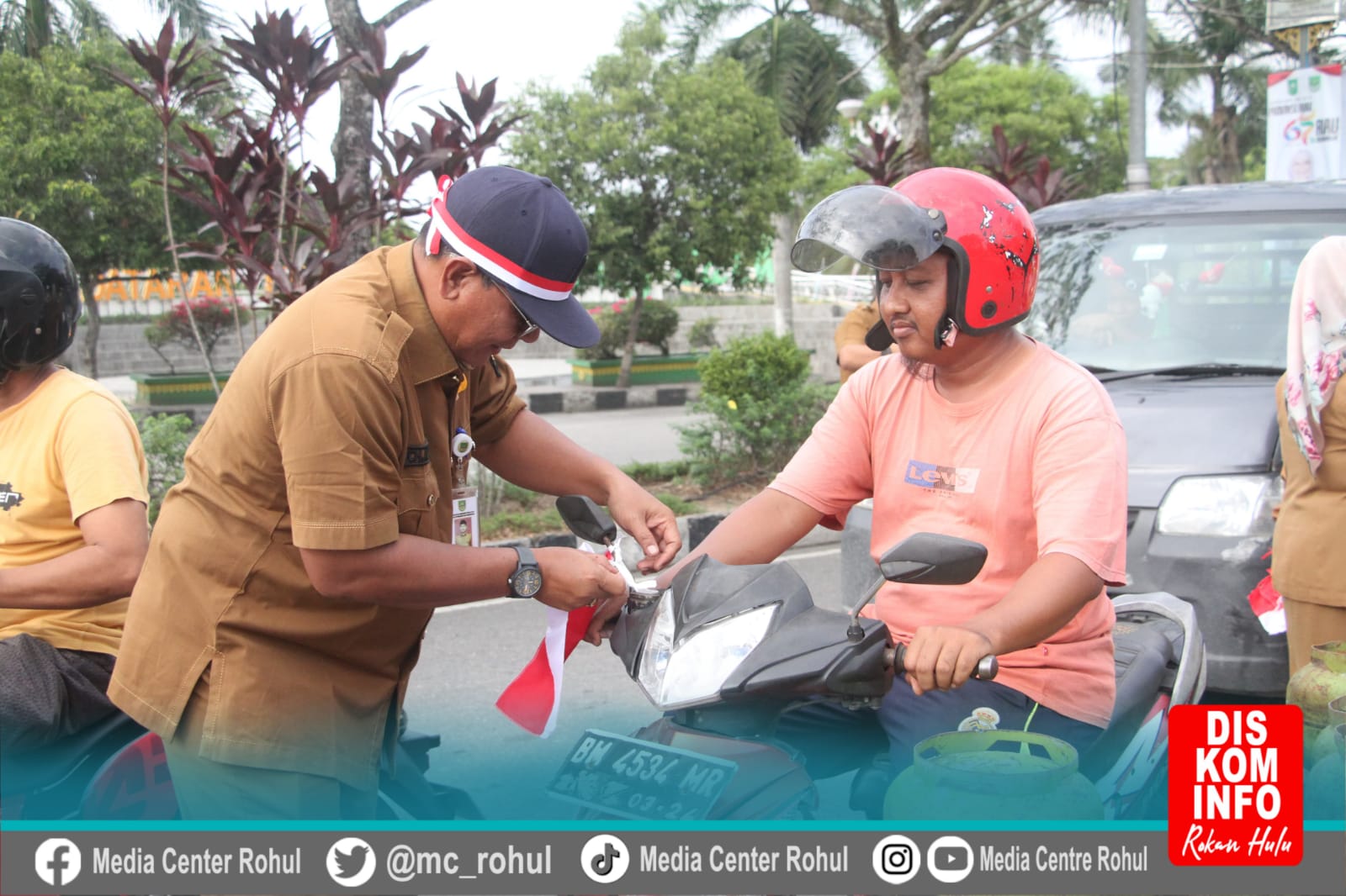 Matahari malu untuk menampakkan cahaya nya tidak membuat semangat dalam menyambut kemardekaan Republik Indonesia ke 79 menjadi layu, dalam kegiatan ini 350 bendera dibagikan dengan 250 ukuran bendera kecil untuk sepeda motor, 50 bendera menengah untuk mobil dan 50 sisanya yang besar akam dibagikan ke rumah warga di Kabupaten Rohul.