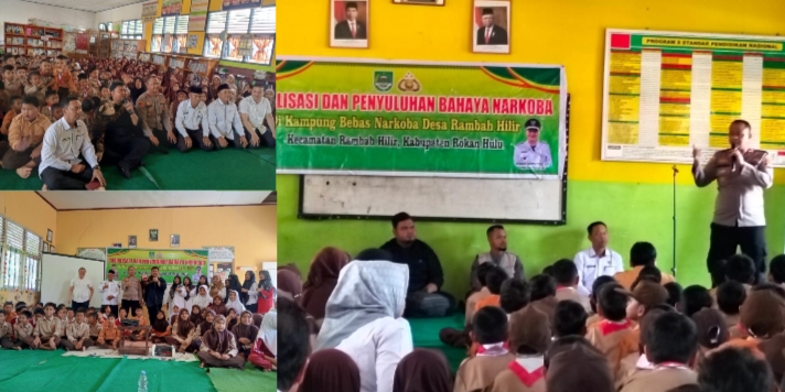 Rambah Hilir,Upaya pencegahan penyalahgunaan narkoba terus digencarkan di berbagai daerah, termasuk di Desa Rambah Hilir, Kecamatan Rambah Hilir, Kabupaten Rokan Hulu. Pada Rabu (12/02/2025) pukul 08.00 WIB, telah dilaksanakan kegiatan Sosialisasi dan Penyuluhan Bahaya Narkoba di dua sekolah dasar, yaitu SD Negeri 001 Rambah Hilir dan SD Negeri 011 Rambah Hilir.