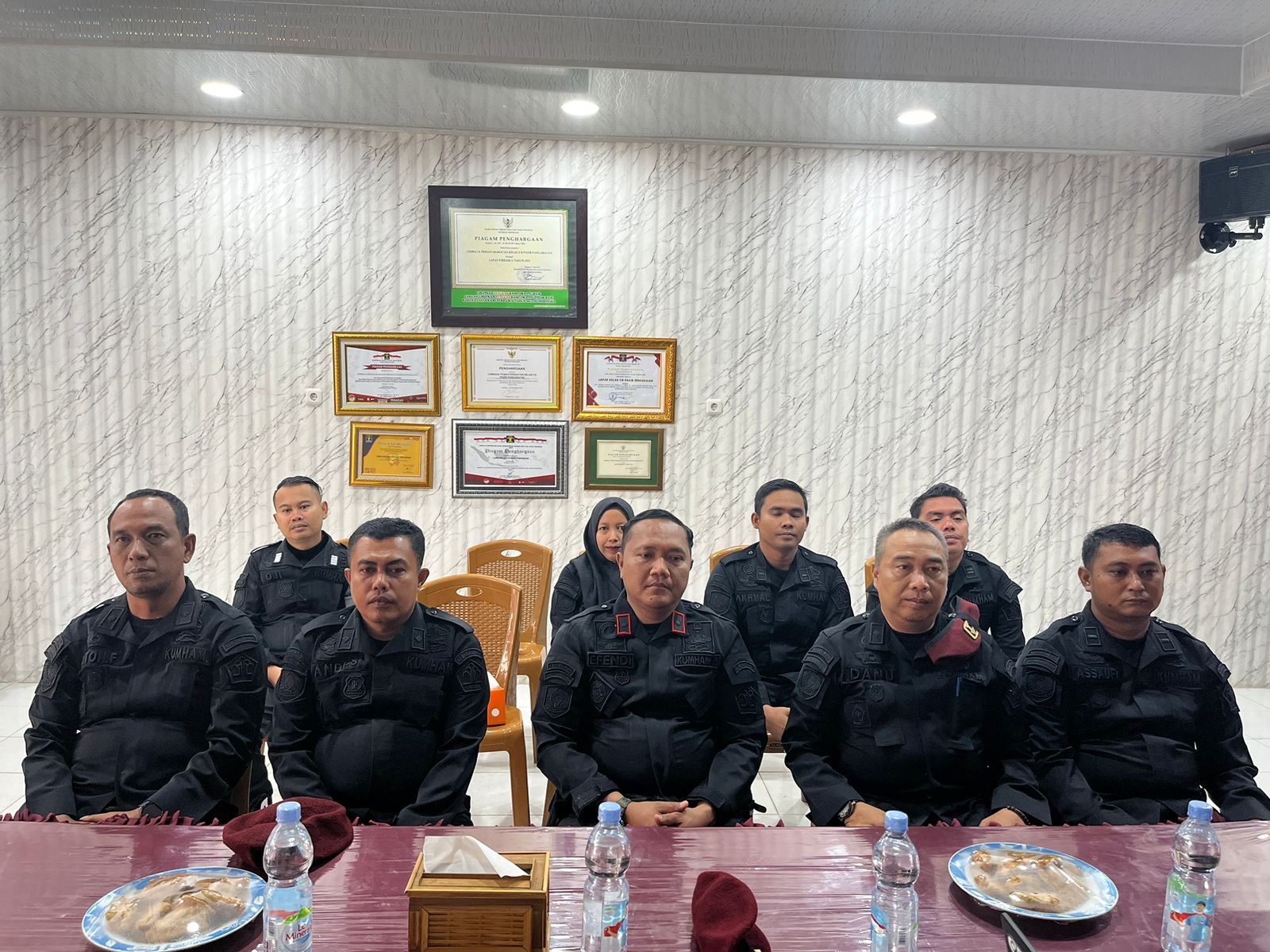 Kepala Lapas Pasir Pengaraian Efendi Parlindungan didampingi Kasubag Tata Usaha Suharno, Kasi Binadik Sunu Istiqomah Danu, Kasi Kamtib Amton Fernando, Pejabat Esselon V dan Jajaran mengikuti Webinar di Aula Lapas Pasir Pengaraian.
