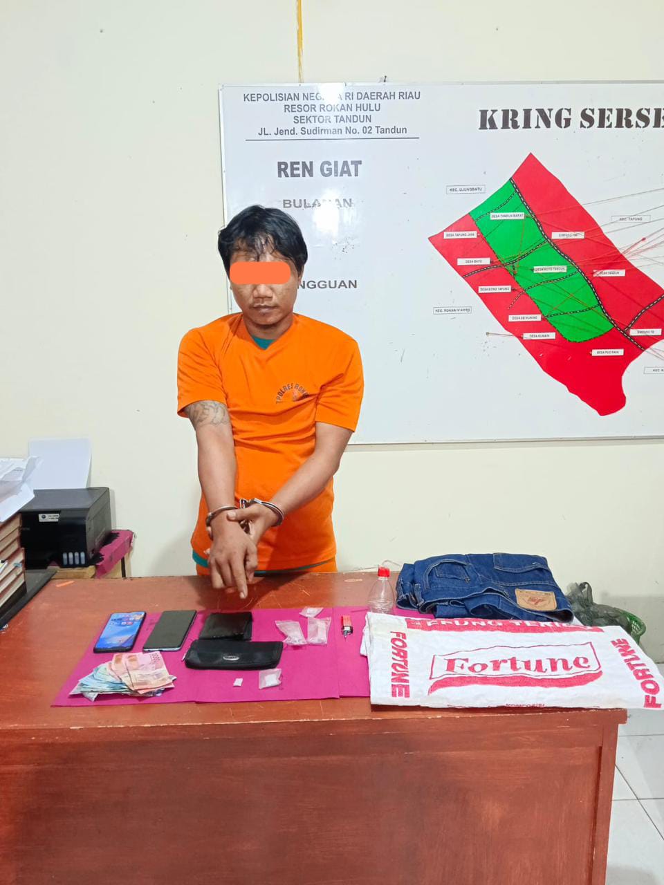 Berkedok usaha jual-beli Kardus Bekas, Personil Polsek Tandun Polres Rokan Hulu (Rohul) menangkap dan pengungkapan Tindak Pidana Memiliki, Menyimpan, Menguasai Narkotika Gol I bukan Tanaman jenis Sabu dengan Berat 2.65 Gram