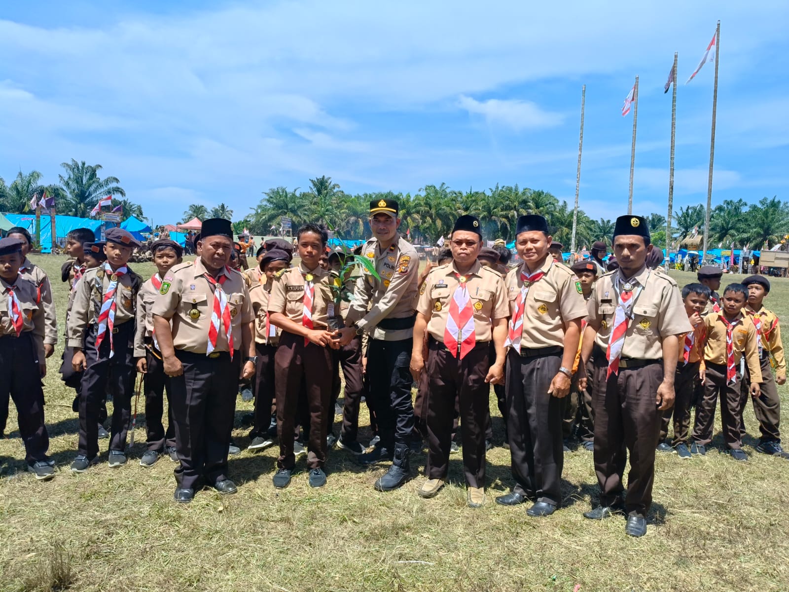 Tutup Secara Resmi Perkemahan Sumpah Pemuda VI, Kapolsek Rambah Samo Bagikan Hadiah Berupa Tanam Pohon